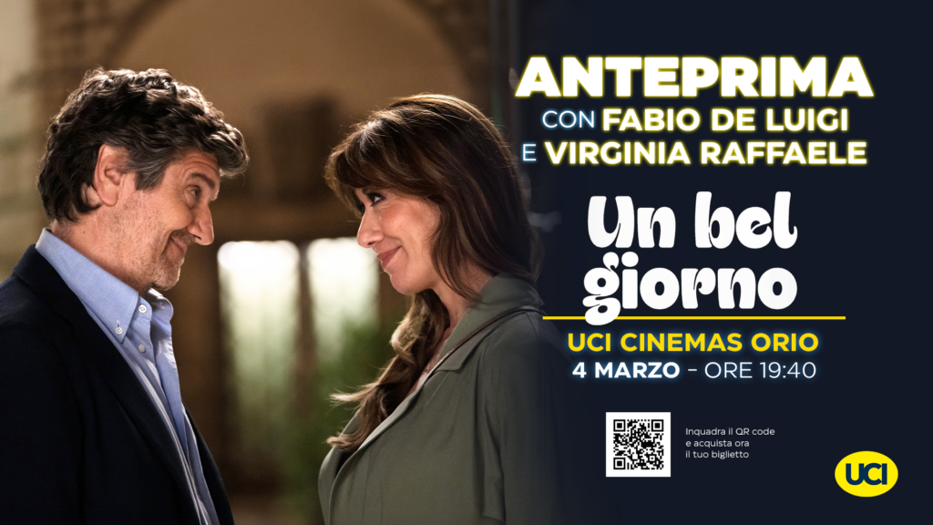 In occasione dell’anteprima del film Un bel giorno in data 4 marzo alle ore 19.40 i due protagonisti del film – Fabio De Luigi e Virginia Raffaele – saranno presenti in sala e saluteranno il pubblico raccontando aneddoti e dietro le quinte.